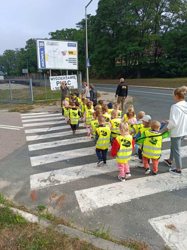 Kolejnym etapem były zajęcia praktyczne na przejściu dla pieszych. Dzieci podeszły do zajęć z dużym zainteresowaniem i były w nie mocno zaangażowane.