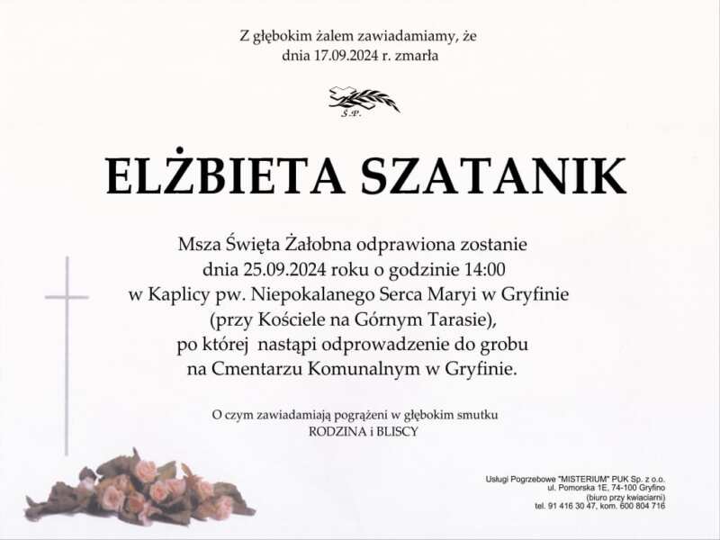 Z niedowierzaniem usłyszeliśmy smutną wiadomość, że w dniu 17 września 2024 r. zmarła nagle nasza droga koleżanka Elżbieta Szatanik (28.10.1956 – 17.09.2024). Szok, łzy, rozpacz…..