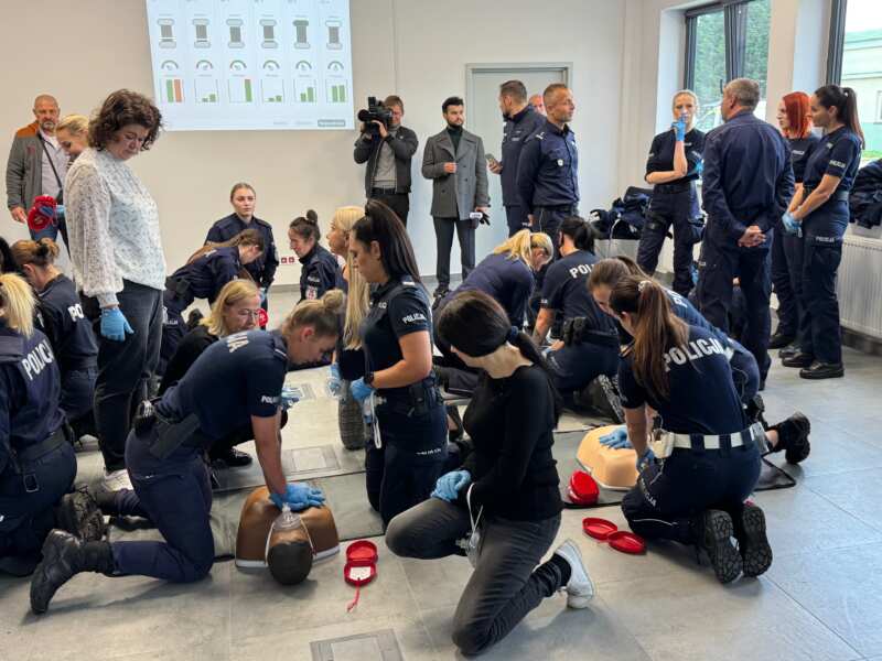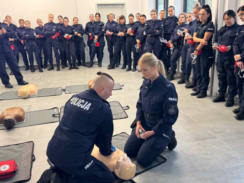 Po krótkim wprowadzeniu teoretycznym funkcjonariuszki przez 100 minut nieprzerwanie prowadziły resuscytację w dziewięciu sześcioosobowych grupach.