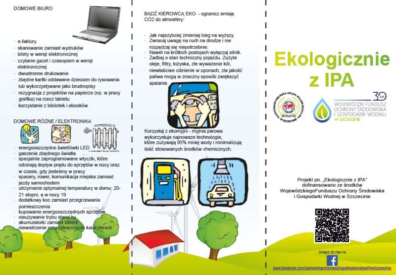Projekt „EKOLOGICZNIE Z IPA” to kampania edukacji ekologicznej skierowana do członków Zachodniopomorskiej Grupy Wojewódzkiej IPA w Szczecinie, ich rodzin, sympatyków oraz mieszkańców województwa zachodniopomorskiego, realizowana przez Zachodniopomorską Grupę Wojewódzką IPA ze środków Wojewódzkiego Funduszu Ochrony Środowiska i Gospodarki Wodnej w Szczecinie