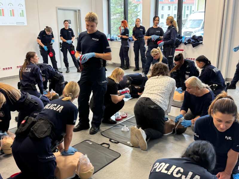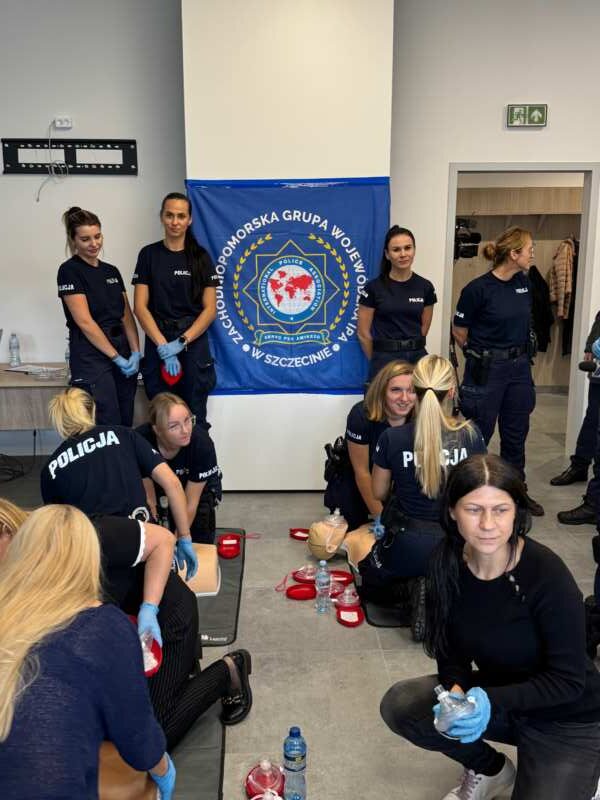 Szkolenie oraz część praktyczną poprowadzili dr Michał Kurdziel oraz Grzegorz Nakoneczny z Wydziału Doskonalenia Zawodowego Komendy Wojewódzkiej Policji w Szczecinie. Po krótkim wprowadzeniu teoretycznym funkcjonariuszki przez 100 minut nieprzerwanie prowadziły resuscytację w dziewięciu sześcioosobowych grupach.