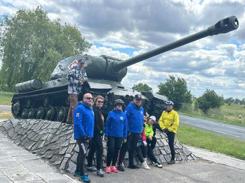 Jedną z atrakcji rajdu byłą wizyta ma moście w Siekierkach. Chwile spędzone na moście podczas naszego rajdu rowerowego na długo pozostaną w pamięci uczestników. Wjeżdżając na ten niezwykły, historyczny obiekt, wielu z nas odczuło coś więcej niż tylko satysfakcję z pokonanych kilometrów. Most zawieszony nad Odrą okazał się nie tylko punktem widokowym, ale też symbolicznym miejscem refleksji, jedności i wzruszenia. Kolejną atrakcją podczas rajdu była możliwość zobaczenia jednego z najsłynniejszych zabytków II wojny światowej w tym rejonie czyli czołgu IS-2 stanowiącego pomnik upamiętniający forsowanie Odry. Czołg ustawiony jako pomnik to radziecki czołg ciężki (Josef Stalin) IS-2, należący do polskiego 4. Samodzielnego Pułku Czołgów, który w okresie od lipca 1944 roku do maja 1945 roku przebył szlak bojowy liczący w sumie prawie 1300 km.