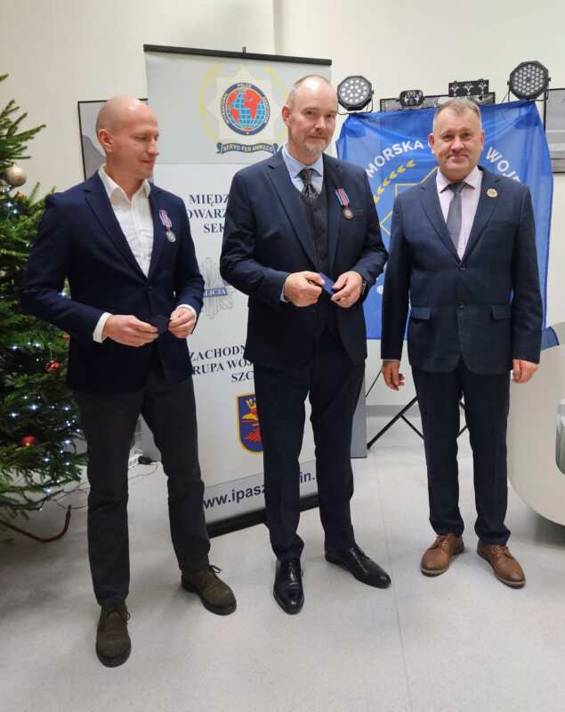 Prezesowi WOPR Szczecin Panu Jackowi Kleczajowi i Panu Karolowi Mikutowskiemu w dowód uznania za zaangażowanie i działalność na rzecz stowarzyszenia. Ponadto wręczono legitymację na kolejne 3 lata Panu Tomaszowi Mercikowi – Zasłużonemu od 12 lat z Regionu IPA w Stargardzie.