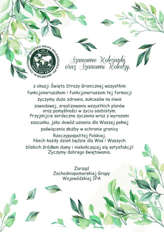 Przyjmijcie serdeczne życzenia wraz z wyrazami szacunku, jako dowód uznania dla Waszej pełnej poświęcenia służby w ochronie granicy Rzeczypospolitej Polskiej.